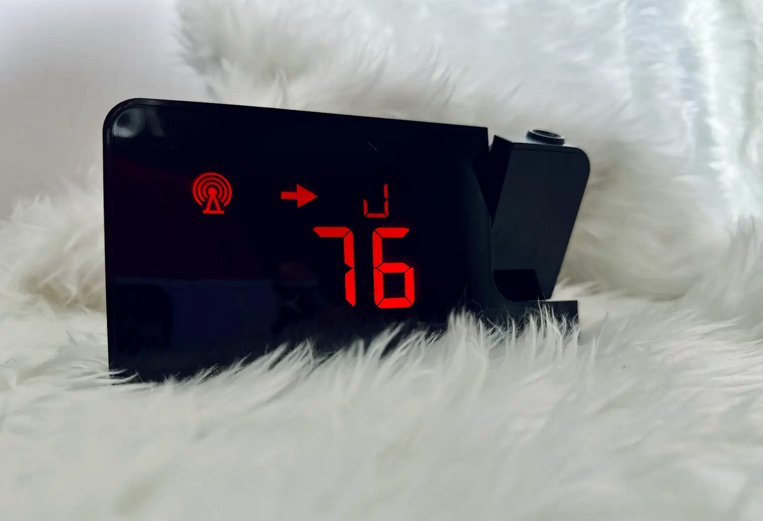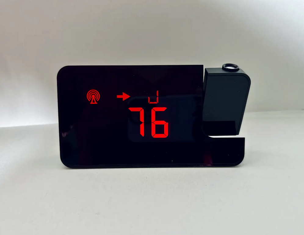 The Glucose Projector connects to your CGM data and projects your current glucose level, trend arrow, and time onto your ceiling or wall. It’s designed for quick, low-light visibility — no phones, no alarms, no waking up fully.