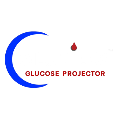 The Gluview Glucose Projector connects to your CGM data and projects your current glucose level, trend arrow, and time onto your ceiling or wall. It’s designed for quick, low-light visibility — no phones, no alarms, no waking up fully.